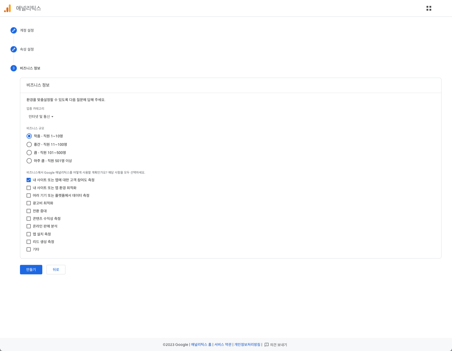 저는 비즈니스 정보를 작성하였지만, 작성하지 않고 생성하여도 됩니다.
