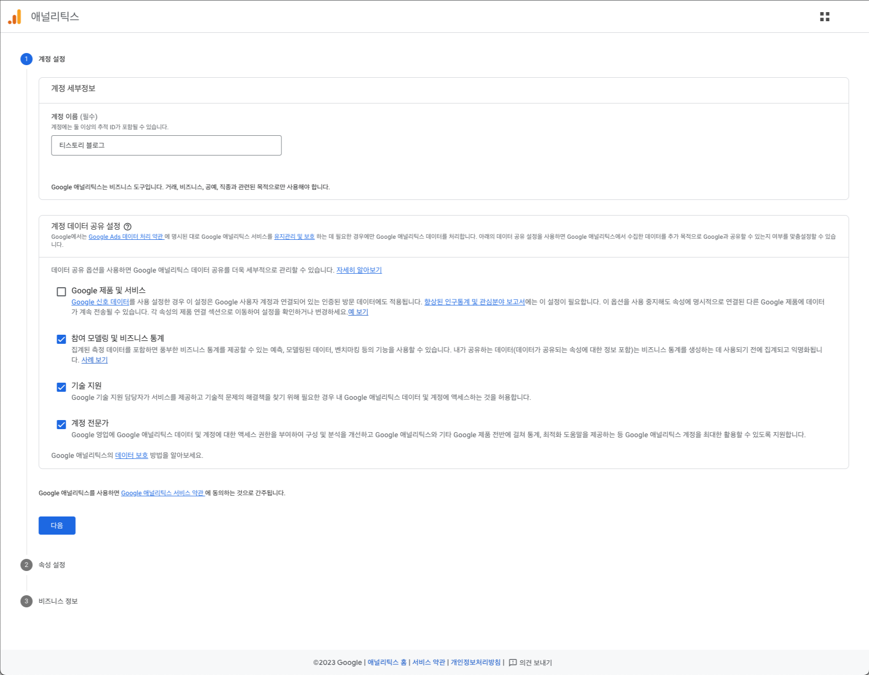 계정 이름은 간단하게 티스토리 블로그라고 작성하였습니다.